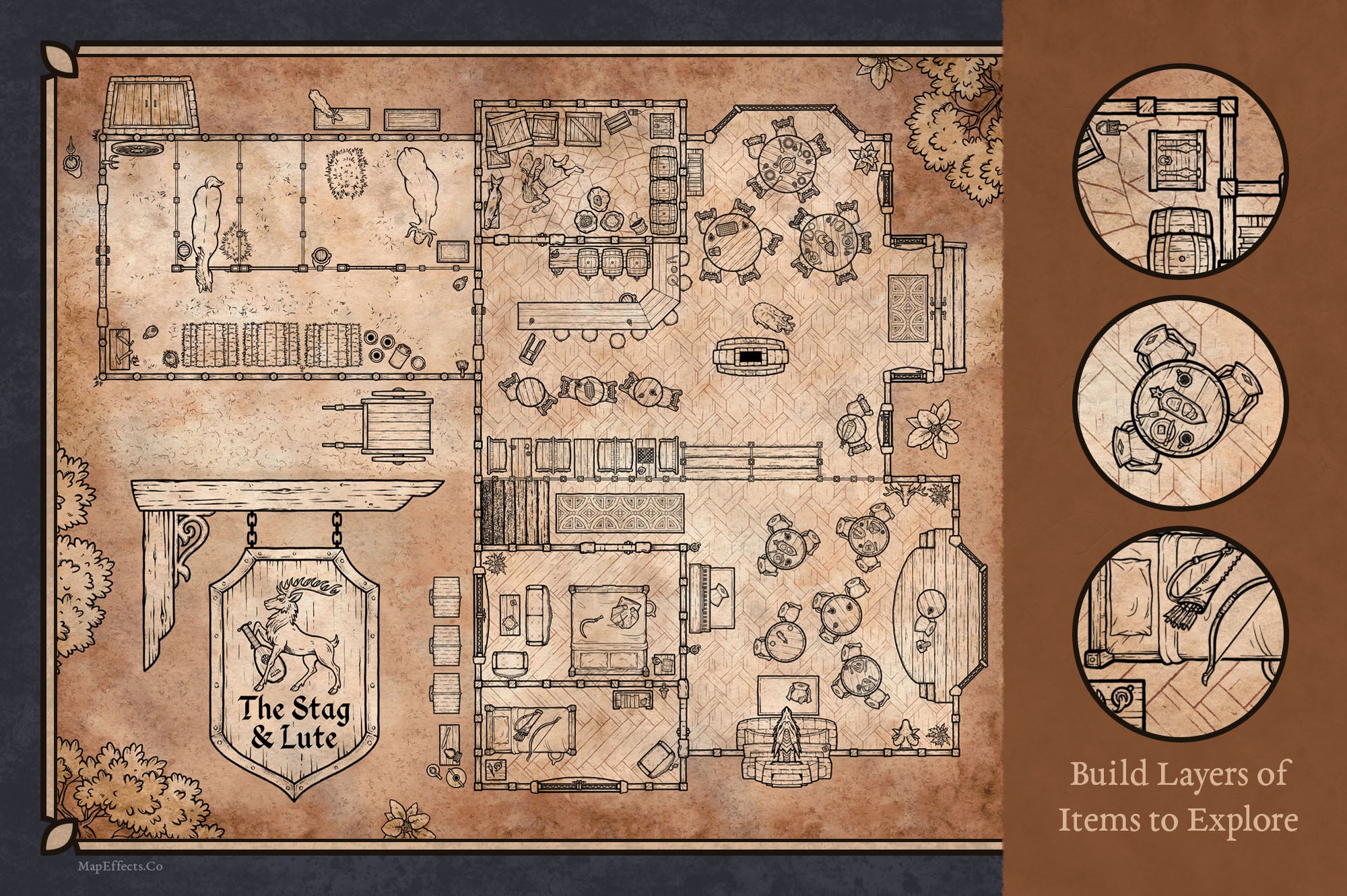 Do you love unrolling a classic hand-drawn map of a tavern or inn during a campaign and taking in the details of tables full of tankards, roaring fireplaces, and mysterious items like a broken sword tucked behind a bookcase? But creating something like that on your own can take days, if not weeks, not to mention the time it takes to actually learn how to draw everything in the first place if you are not artistic.